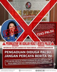 “‎Itu hoaks besar. Nggak bisa kita main-main di era Presiden Prabowo Subianto. Bupati pun sudah banyak menindak tegas aparatur sipil negara (ASN) yang melakukan suap dan pungli di lingkung Pemkab Deli Serdang,” tegas Kepala Dinas (Kadis) Komunikasi, Informatika, Statistik dan Persandian (Kominfostan) Deli Serdang, Sandra Dewi Situmorang SSTP MSi, Minggu (22/3/2026)