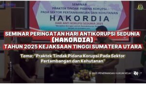 Hal tersebut disampaikannya kepada aparat Kejaksaan Sumatera Utara pada acara Seminar peringatan Hari Anti Korupsi Sedunia (HAKORDIA) Tahun 2025 diyang di aula cipta kerta lantai III Kejati Sumatera Utara.pada hari Selasa (09/12/2025