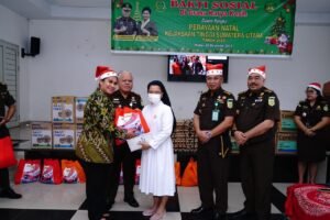 Medan, Indotrans.web.id|| -Menyambut hari natal tahun 2025, Kejaksaan Tinggi Sumatera Utara berbagi kasih dalam kegiatan bertajuk “Bakti Sosial Perayaan Natal Kejaksaan Tinggi Sumatera Utara” yang dilaksanakan secara serentak di tiga lokasi yaitu panti jompo Graha Karya Kasih di Jl. Mongonsidi No.69, Polonia, Kec. Medan Polonia, kemudian Panti Asuhan Yas Alwasliyah di Jl. Karya Jaya No.267, Gedung Johor, Kec. Medan Johor dan yang terakhir Panti Asuhan Talenta Delpita di Jl. Bunga Bangsa/Jl. Unika Ujung LK XX Gg Sepadan I Kelurahan Kwala Bekala Kecamatan Medan Johor.