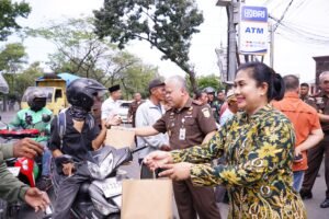 Ratusan paket takjil dibagikan kepada para pengguna jalan yang melintas menjelang waktu berbuka puasa. Petugas keamanan dan PPNPN di lingkungan Kejati Sumut juga menerima paket Ramadhan sebagai bentuk perhatian institusi terhadap seluruh elemen pendukung kinerja.