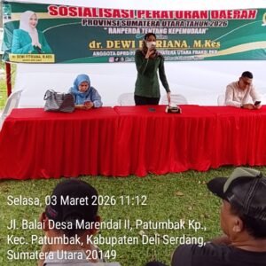 Deli Serdang,Indotrans.web.id.|| – Anggota DPRD Provinsi Sumatera Utara dari Fraksi PKB, Dr. Dewi Fitriana, M.Kes, menggelar kegiatan Sosialisasi Peraturan Daerah (Perda) Provinsi Sumatera Utara Tahun 2026 terkait Rancangan Peraturan Daerah (Ranperda) tentang Kepemudaan.